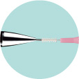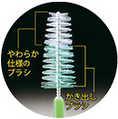 ブラシ先端部と後端部のダブル植毛により歯間部に挿入しやすくなりました。またワイヤーは高硬度ステンレス鋼を使用することにより耐久性を高めています。