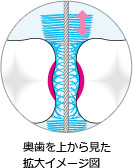 奥歯には右図のように歯と歯の間に凹凸があり、ハブラシやフロスでは赤い部分の歯垢をなかなか落とすことができず、歯周病の原因となります。 歯間ブラシはそのような落とせない部分の歯垢を落とすことができ、歯周病対策に有効です。